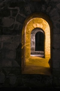 The solution is found underneath the castle ruins, in the catacombs…